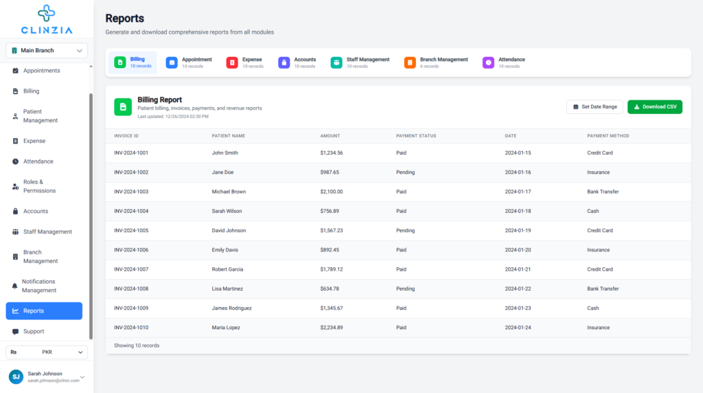 Manage multiple clinic locations from a single dashboard. Consolidated reporting and centralized administration.